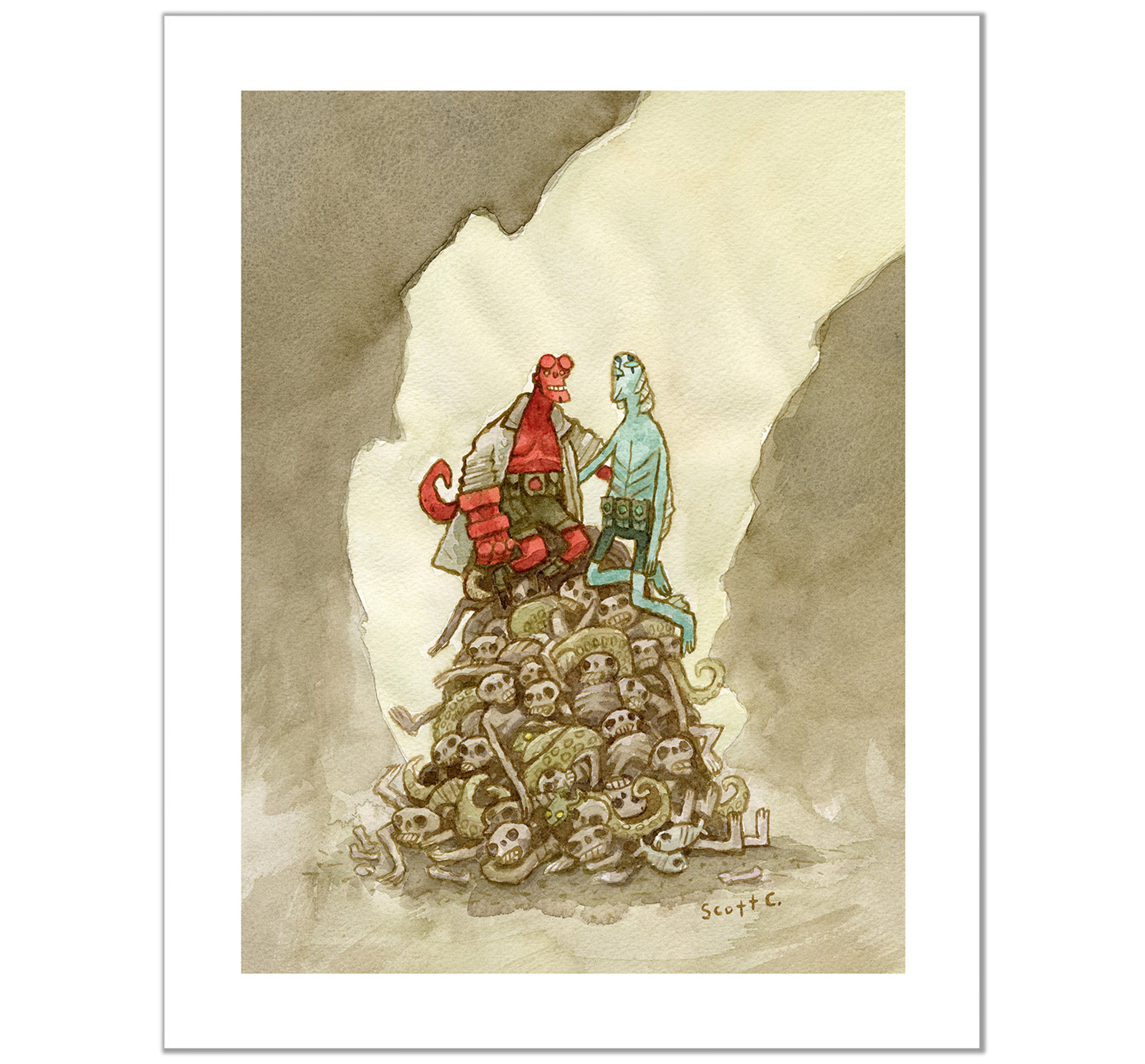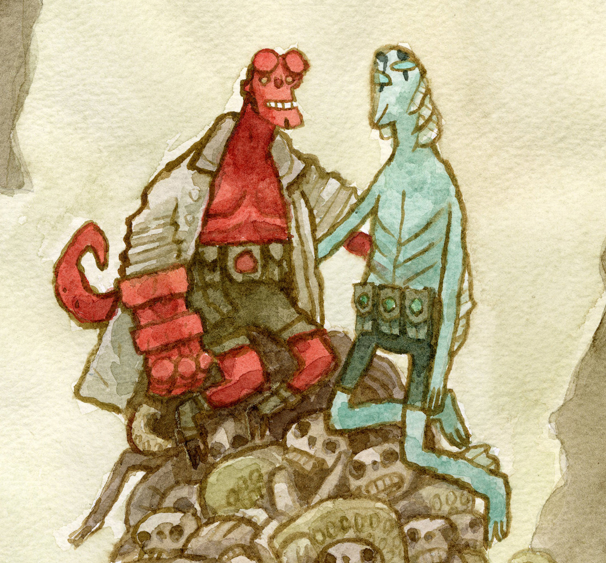 Two good friends take a break after a big battle knocking underworld folks out. They sit atop these rotten creatures and enjoy a nice moment. They have been friends for a long time and know each other well. It is good to see them spending these moments together.