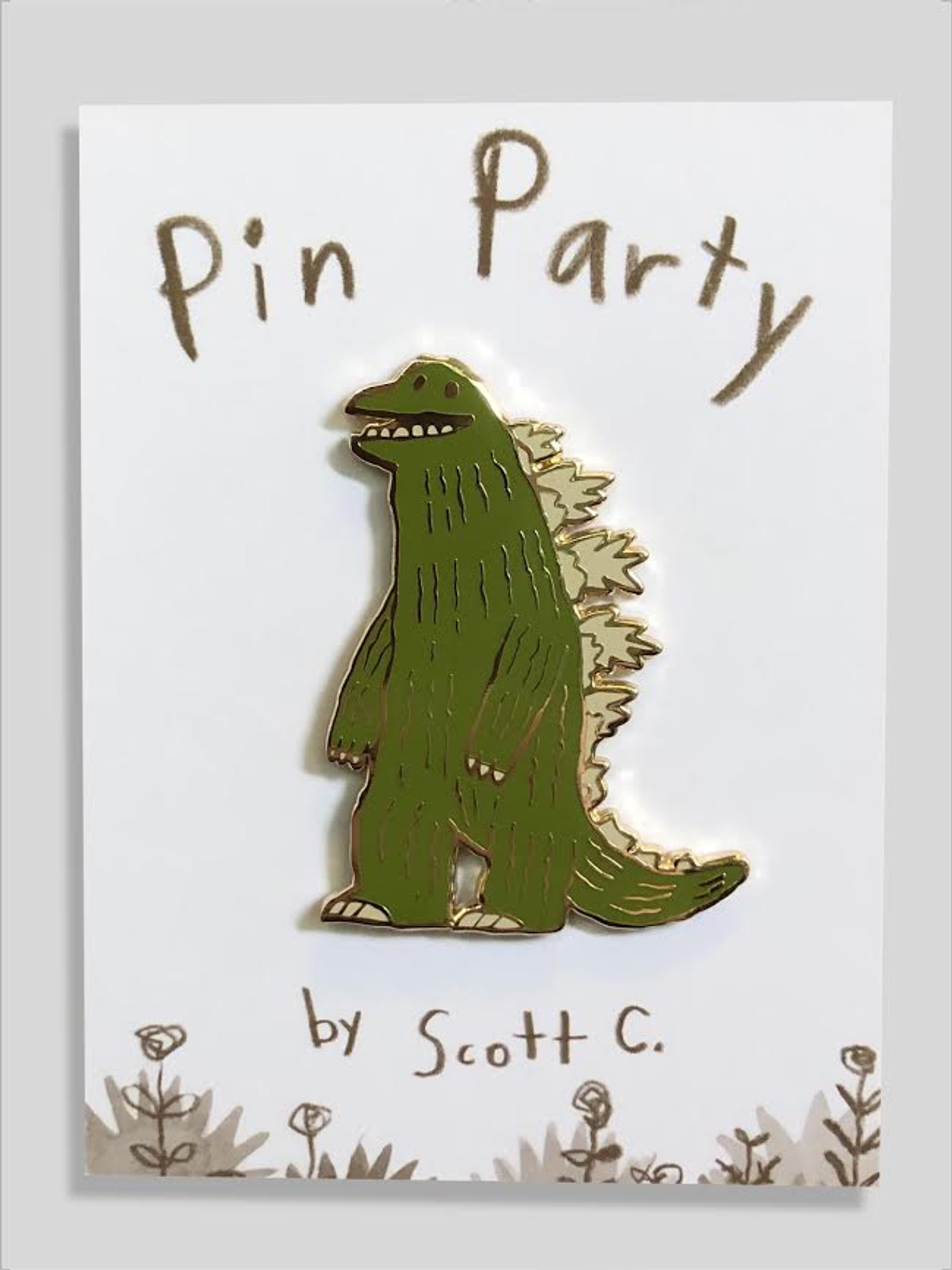 Are you scared of enormous lizards that walk on two feet? Do not worry because wearing this pin will tell any thunder lizard cruising through town that you are a friend. You are a friend to all lizards great and small, young and ancient. All lizards will love you if they see this pin on your person.