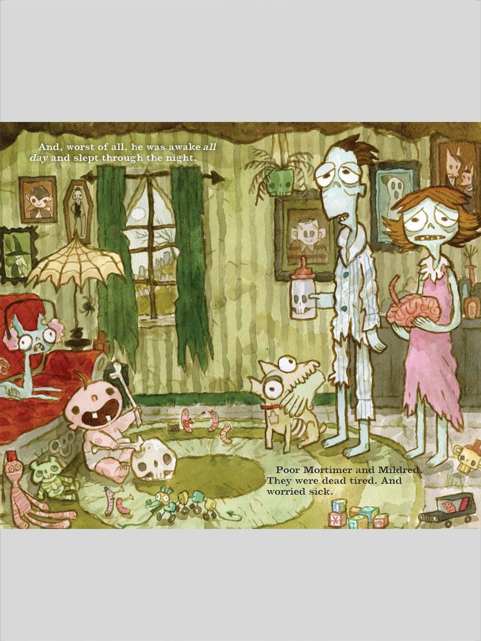 Happily married zombie couple Mortimer and Mildred are thrilled to be new parents. But having a baby isn’t what they expected. Sonny hardly ever cries. His teeth are coming in instead of falling out. And worst of all, he’s awake all day and sleeps through the night.