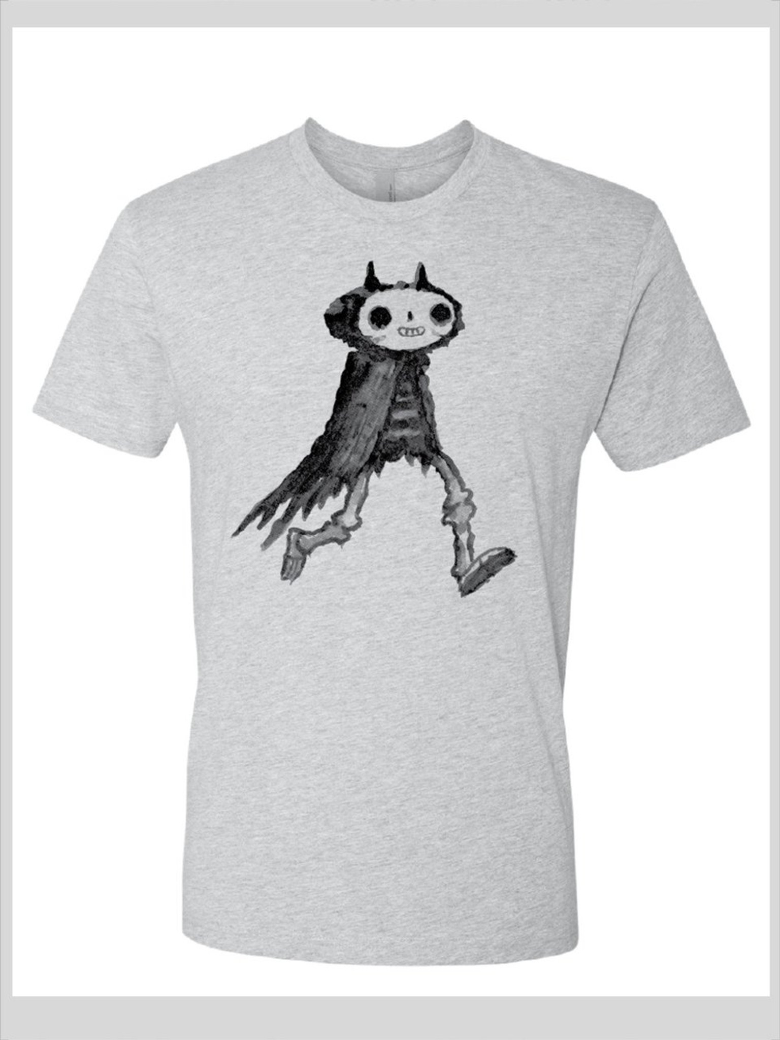 Good old Devil Bones keeping everything completely real for you on your chest and belly. You've cruised around town carrying Devil Bones on your tote, now carry Devil Bones on your body! Devil Bones!