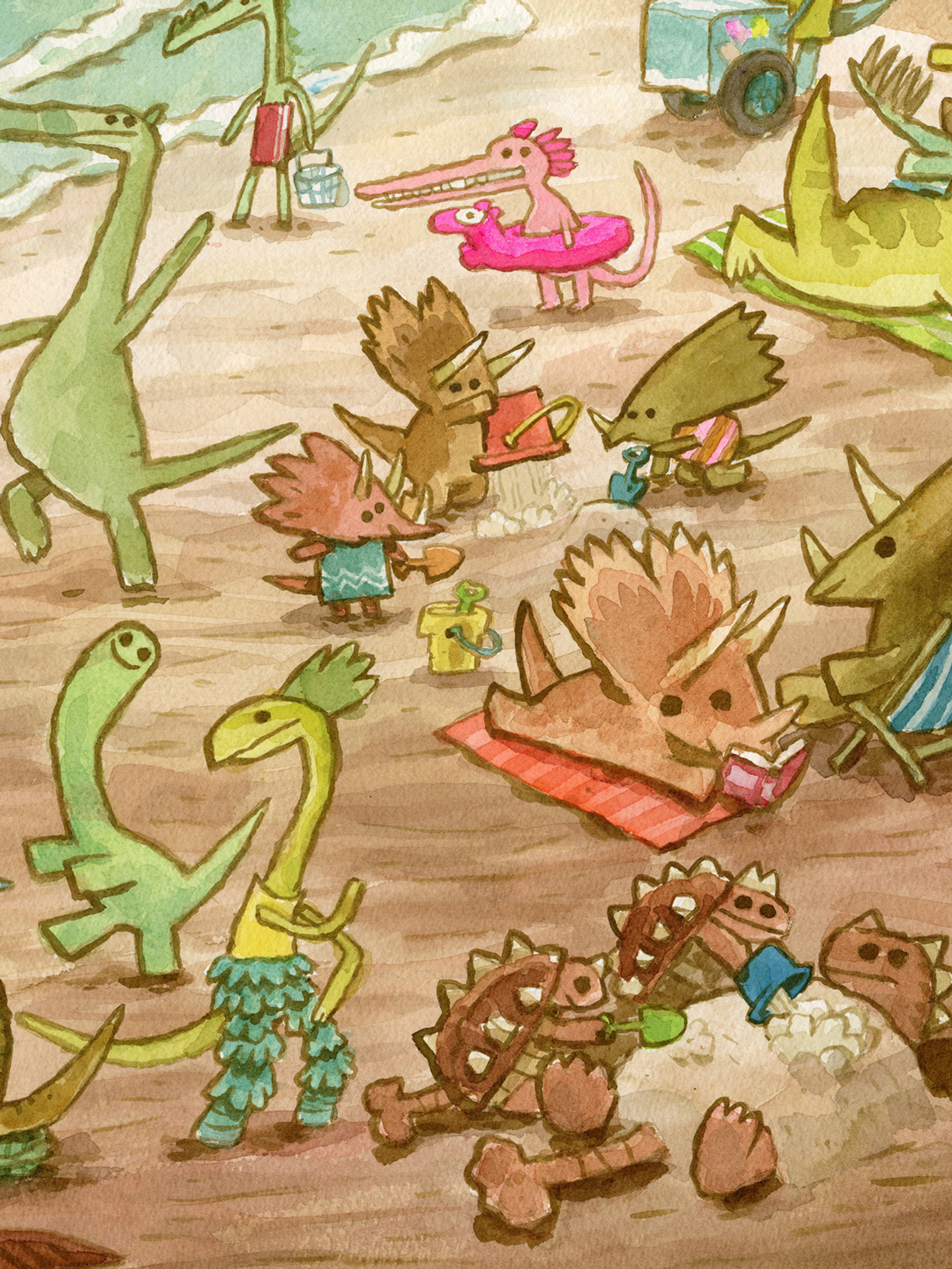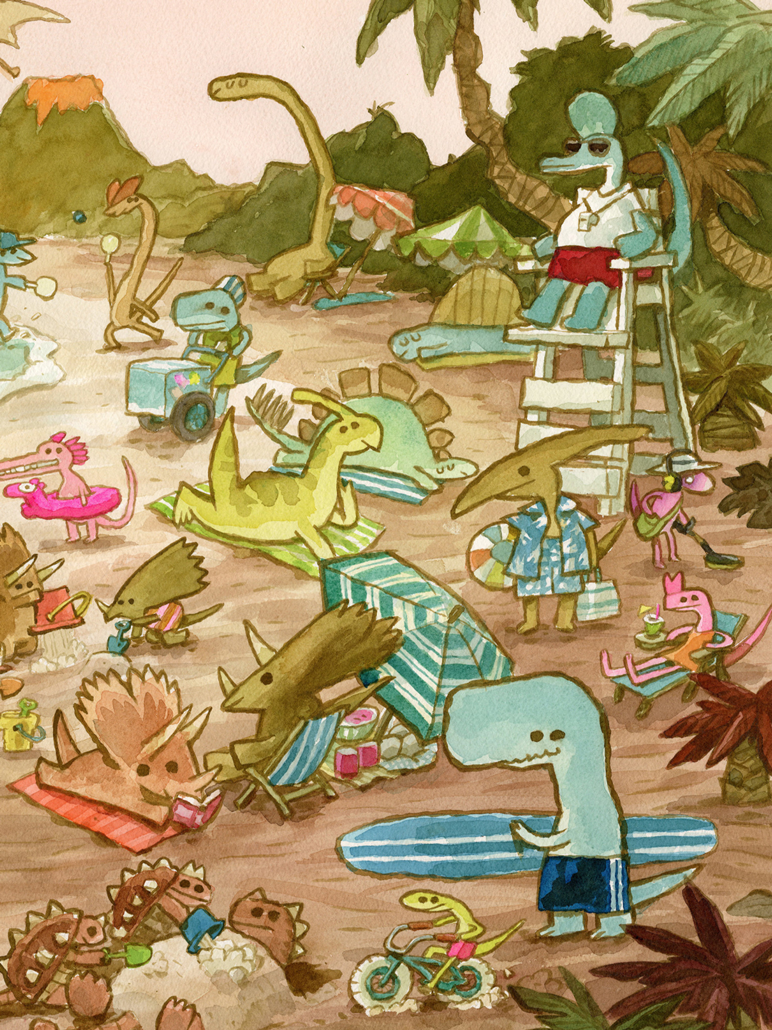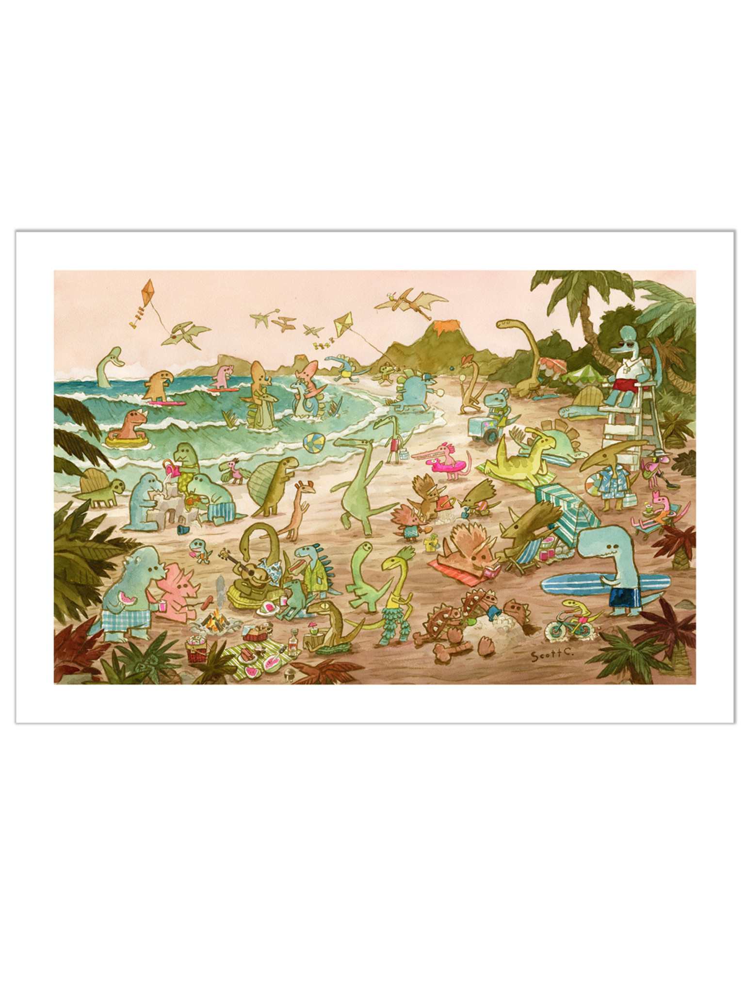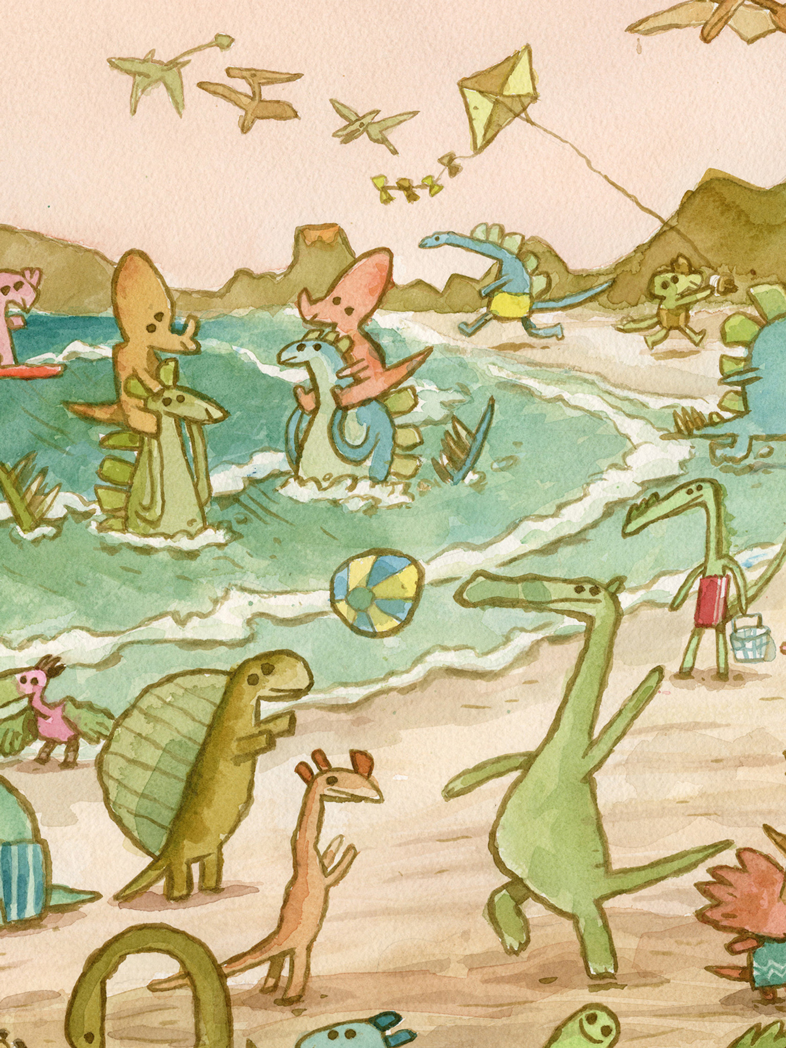 WELCOME TO DINOSAUR BEACH! A place where dinosaurs come to enjoy sunny day activities upon the sand and ocean, the sunny beach welcomes all prehistoric creatures. Would you like to surf on prehistoric waves? Go forth, young friend! Building prehistoric sand structures just out of reach of the ancient waves? Be bold about it! Kite flying up your prehistoric alley? That is also an option. Wait a moment. You are not from prehistoric times? That is fine, you are welcome to visit from whatever time you harken from. The dinosaurs shall sing your praises.