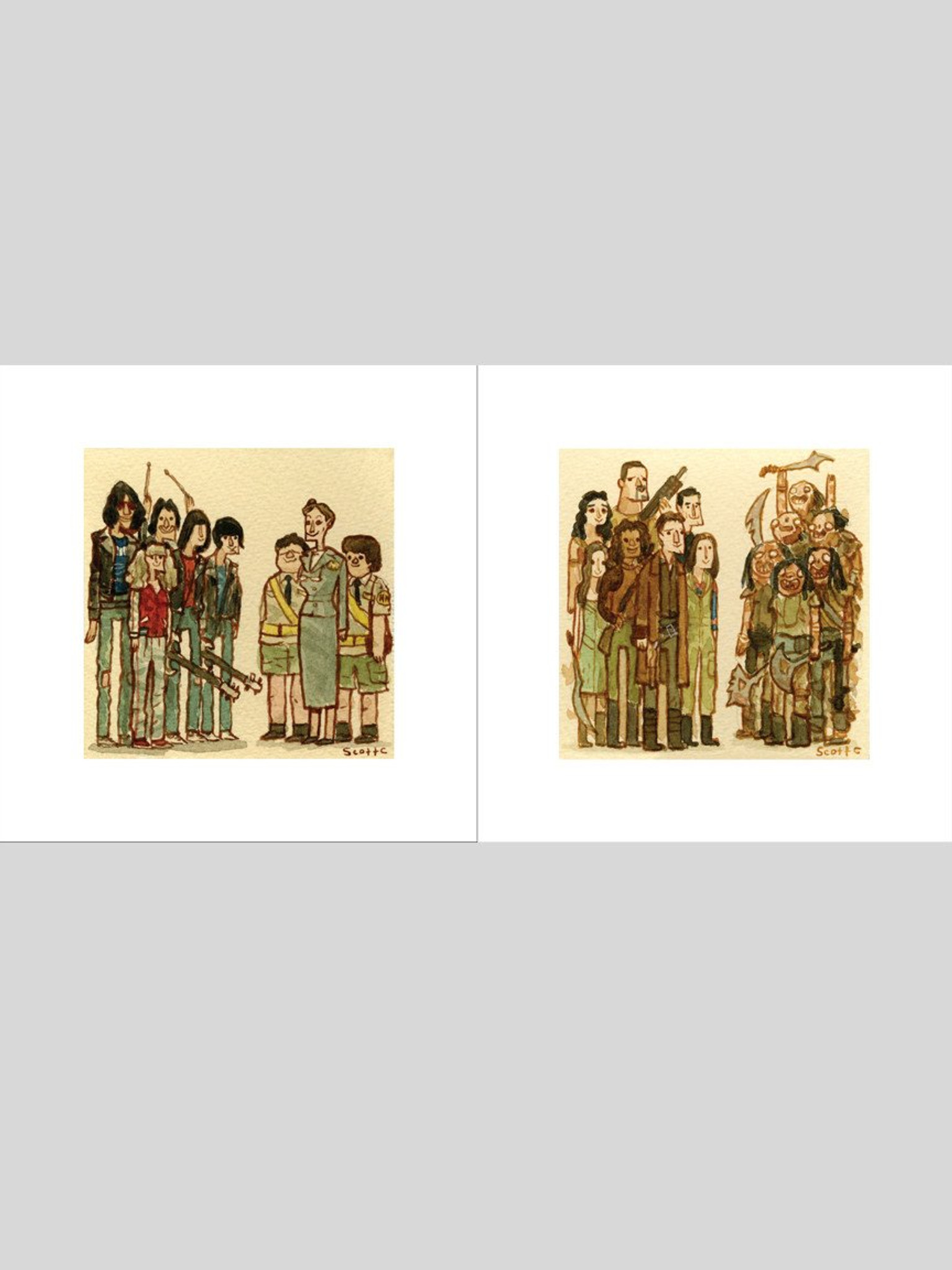 This is the third collection in the Great Showdowns series!  Expect many more epic and slightly less epic clashes.  Expect some barbarians, boxers, aliens in blankets, nerds, karate experts, runway models, wonderful singers, space warriors, lovers, elderly ladies, sushi chefs, camp kids, killer dolls, masterminds, dogs, and telephones!