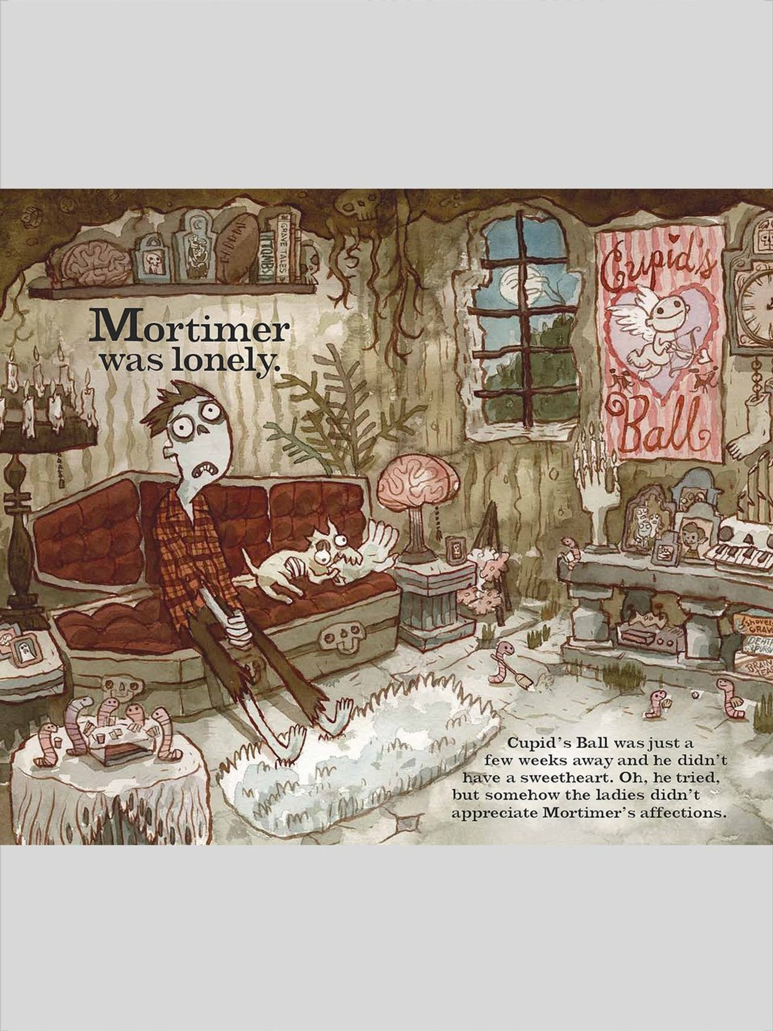“Mortimer is looking for love. And he’s looking everywhere! He’s worked out at the gym (if only his arm wouldn’t keep falling off). He’s tried ballroom dancing lessons (but the ladies found him to be a bit stiff). He’s even been on stalemate.com. How’s a guy supposed to find a ghoul? When it seems all hope has died, could the girl of Mortimer’s dreams be just one horrifying shriek away?”